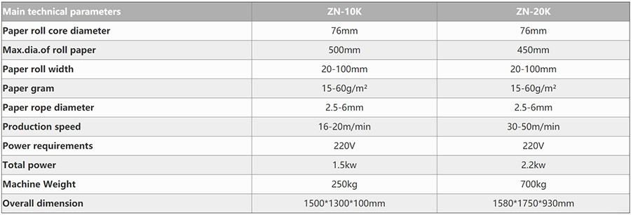 This machine is designed to make twisted paper rope with high speed. as an auxiliary equipment for paper shopping bag machines wth handles inine.it uses paper tape as raw material, twists it into rope with required diameter through high speed spinning and rewinds them together to be a paper rope roll.