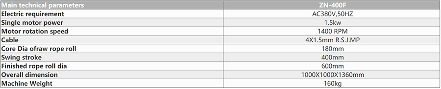 This machine is mainly used to support the twisted paper rope machine.This machine takes the paper rope roll produced from twisted paper rope machine as the raw material.releases the roll on one shaft and twines it on the other shaft on the machine. This machine can enlarge the diameter of the paper rope roll, and can eliminate rope knots in the raw paper rope roll, as well, so that the application efficiency of paper rope roll can be greatly improved in the afterwards processings.