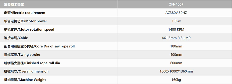 该机器主要配套纸绳机使用,以纸绳机的绳卷为原料,通过机器轴心的高速旋转,将绳卷在一 端快速释放并在另一端复卷一遍,既能扩大最终绳卷的外径和绳卷中心的内径,又能消除原有绳卷中 可能存在打结现象,从而确保纸绳在后续生产中提高效率和质量。