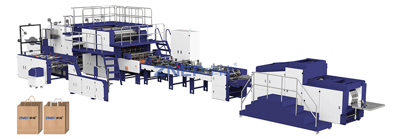 La máquina se utiliza para producir bolsas de papel portátiles plegables en el interior. El rollo se alimenta con papel, y luego la cuerda redonda y el rollo de papel se hacen automáticamente por la estación de trabajo manual en un asa manual, y la mano terminada se usa a través del sistema de transporte. Un dispositivo que se envía al mango de corte, mango de entrega, mango de pasta, mango de presión y pliegue interno, luego, la hoja de papel se perfora en la posición del parche, la posición del parche se aplica con pegamento y el mango se pega automáticamente. Luego corte horizontalmente, transfiera la hoja de papel cortada horizontalmente al mecanismo de plegado interno, y luego el host pinta el papel con el asa a mano con pegamento de borde, hendidura, forma el tubo, la parte inferior de la bolsa, forma la parte inferior de la bolsa y la envía fuera de la bolsa., Todo el proceso se completa simultáneamente a la vez. Realmente realiza una producción totalmente automatizada, que puede ahorrar costos laborales de manera efectiva.